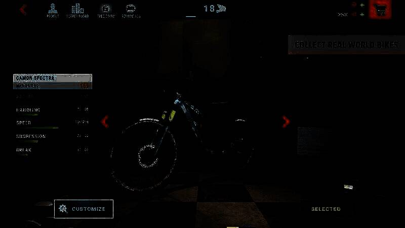 2、玩家可按自身喜好对山地车进行全方位定制,从车身颜色自由搭配、个性贴纸随心粘贴到零部件升级改造,打造独一无二的专属山地战车。