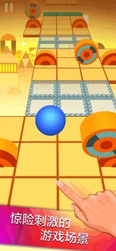 1. 玩家按住屏幕左右滑动,操控小球在布满障碍和陷阱的平台滚动。
