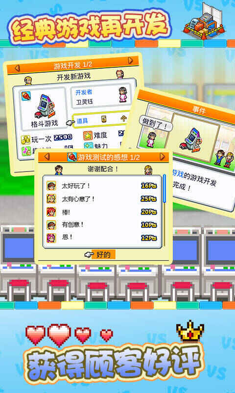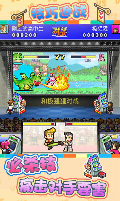 此外,游戏不仅支持开设游戏厅,还能开发各类游戏装备、举办多样游戏比赛。当普通客人成为常客后,可参加格斗游戏比赛,施展必杀技击败对手,夺冠后能增加游戏厅的客流量。