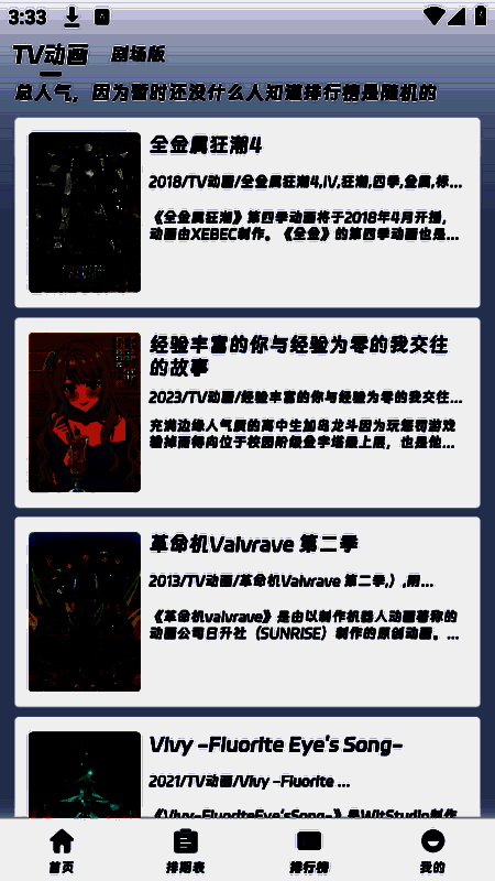 3. 详细介绍:每部动画都有剧情、角色、制作团队等详细介绍,让用户全面了解作品。