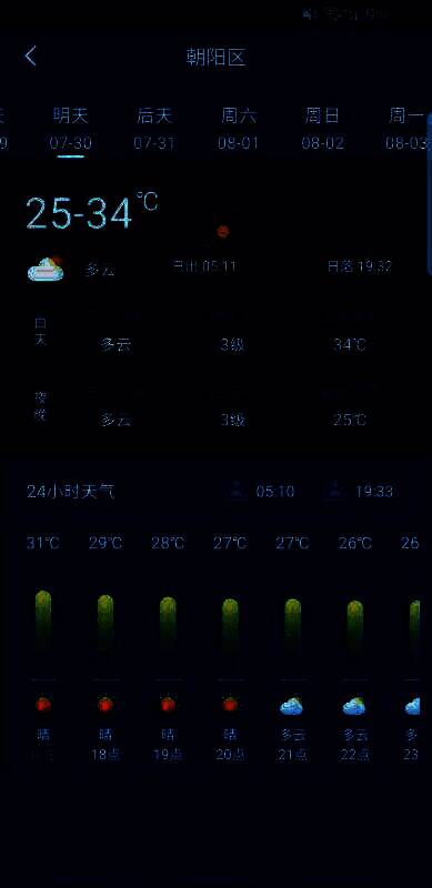 3. 用户可查本地或其他城市各时段天气变化。