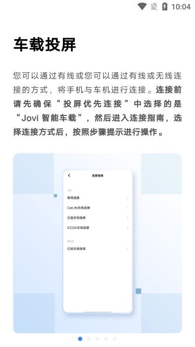 4. 连接设置明晰:确保在“屏幕投影优先连接”中选jovi Smart Car,再进入连接指南,选连接模式并按步骤操作。