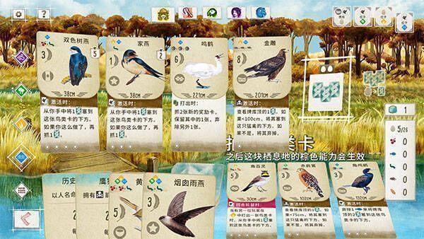 4、灵活的计分体系:玩家可通过小鸟、奖励卡和回合目标等多种方式积累积分,提供了丰富的战略选择。