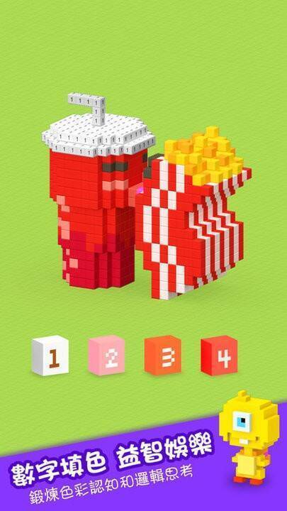 玩家可在三维空间进行创作,游戏有多种不同主题的图案,玩家按数字指引选色填充,就能完成精美的立体画作。3D 视角能让玩家自由旋转画面查看各角度,随着游戏推进,会解锁更复杂精致的图案与细节,增添挑战性。
