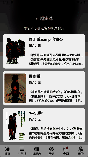 1. 用户可按需选择动漫,实现个性化追番。