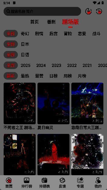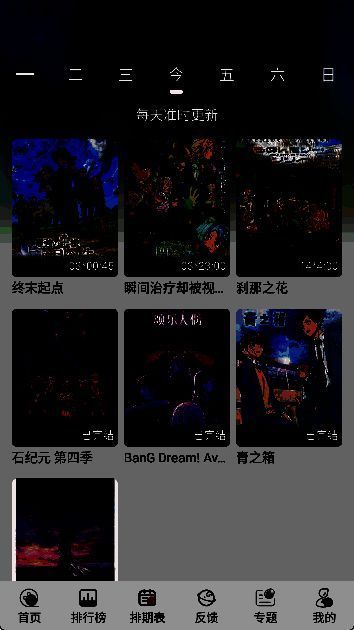 3. 排期表页面提供每日动漫更新情况。