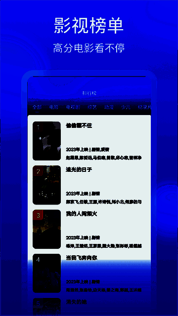3. 排行榜页面能查看电视剧、电影、综艺、动漫、少儿等影视热门排行榜。