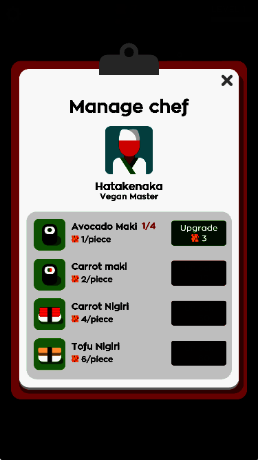 4. 解锁并升级厨师,疯狂制作寿司,点击不停。