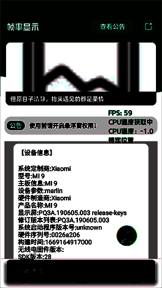 帧率显示器app官方版下载安装最新版本是一个免费的系统工具应用程序!帧率显示器app可以让您不断了解手机的情况,无论你是职业玩家还是普通用户,用户都可以更好地了解他们的手机,有了这个应用程序,就不需要复杂的操作,用户可以轻松地在线查询内容,还可以帮助您在玩游戏时测量一系列参数,如帧率、刷新率、CPU温度和手机电池温度;喜欢的用户不要错过,快快下载并体验!