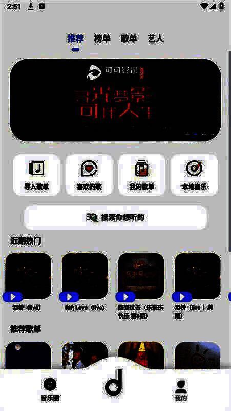 3. 全新升级页面,主页与音乐库设计独特。