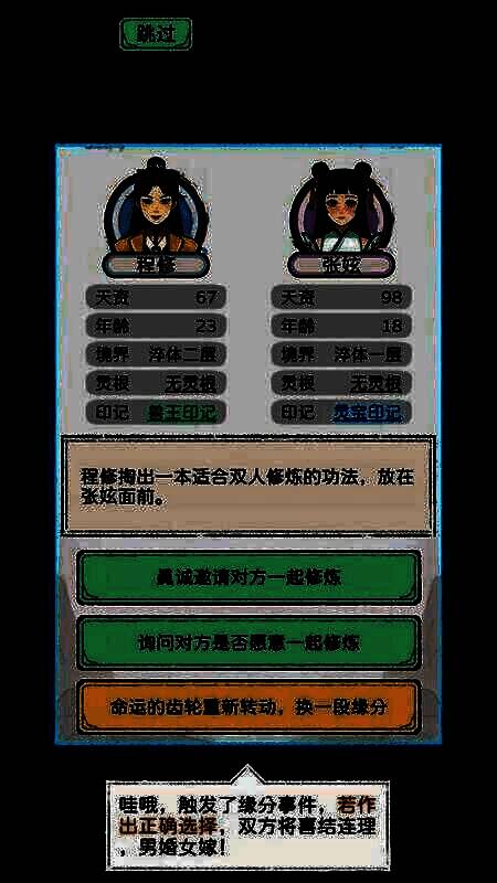 天冷时不妨宅家修仙,《修仙世家模拟器 折相思免广版》是一款放置古风修仙游戏。它虽无显著特色,只是将修仙元素融入常规模拟操作,但适合休闲玩家。总体而言,游戏画面表现一般,不过也有亮点,比如搞笑的音效令人耳目一新,各类文字与设定逻辑性强,趣味性和可玩性兼具。