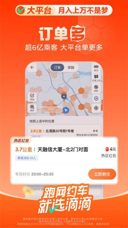 2. 便捷智能,海量订单:智能推送订单,告别路边扫活,接单更轻松。