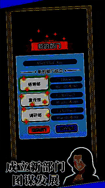7. 当公司人员数量持续增加时,会自动开启新部门,玩家也可根据实际情况对现有部门进行重组,使企业架构更加合理高效。