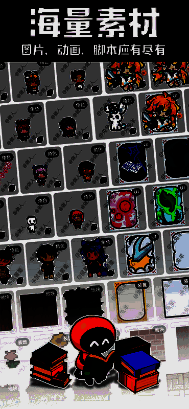 2、可以随时随地随意创建主题背景、人物、系统障碍、道具,完成的画作能用于自己作品的任何地方。