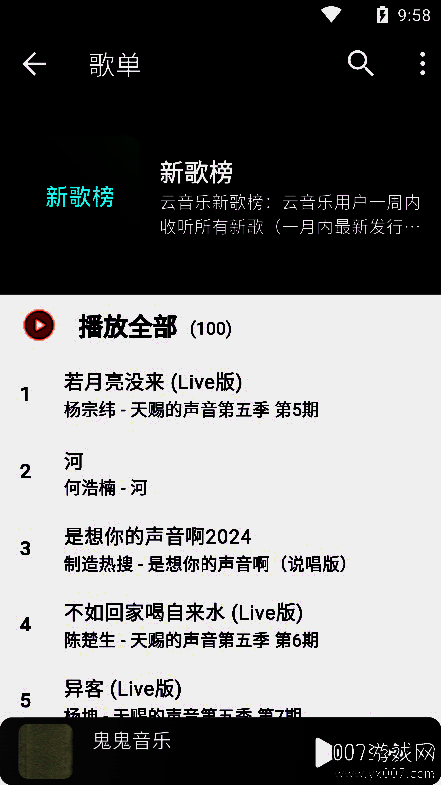 4.随便听听推荐的流行歌曲。流行歌曲列表使您更容易找到歌曲。下载的歌曲可以直接导入其他音乐播放器。
