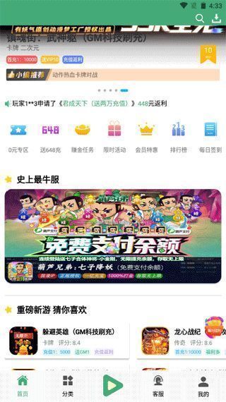 米粒游手游最新版是一款提供BT游戏下载服务的游戏盒软件。米粒游手游包括大量流行的BT手机游戏资源,没有广告或恶意程序。上线后,玩家可以获得VIP、金锭、钻石道具等福利。玩家可以在线为游戏账户充值,并免费获得有价值的福利套餐。同时,用户可以在平台上接收各种不同类型的热门游戏,学习不同BT游戏版本的策略,游戏平台的修复工具还可以帮助用户自动检测和安装游戏所需的组件和环境,顺利开始您的游戏之旅!