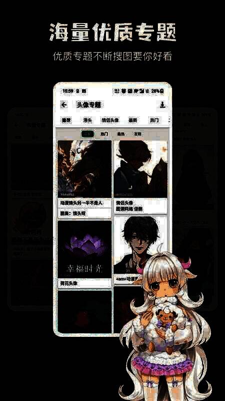 3. 有众多以美女、动漫等为特色的壁纸和头像,也能选本地图片作封面。