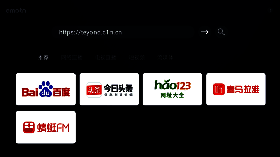 emotn浏览器最新版是一款专门为电视用户打造的浏览器。用户借助它能轻松畅游互联网,享受优质浏览体验。在大屏幕上浏览网页十分惬意,还能查看电视上没有的信息,如直播节目、剧集、电影等丰富资源,在家就能感受影院般的视听享受。