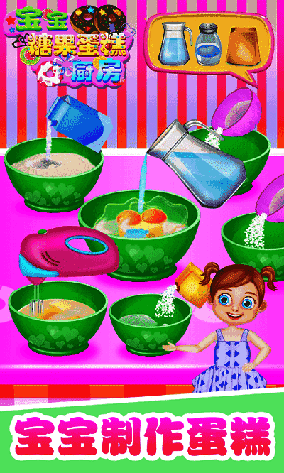 宝宝糖果蛋糕厨房游戏是一款面向儿童的烹饪模拟游戏,玩家能在游戏里制作各式各样的糖果和蛋糕。