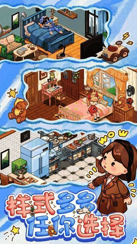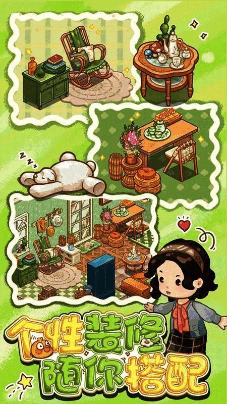 1、新颖卡通风格:可爱角色搭配疗愈场景,带来梦幻商业体验。