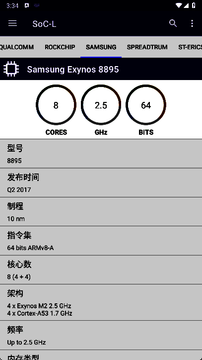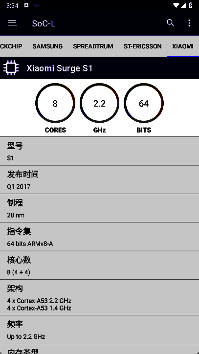 SoC-L安卓中文版软件,能让你查看Allwinner、Amlogic、Apple等各大厂商的芯片规格。用户可查询指令集、型号、发布时间等多项信息。这款软件优点众多,在性能监控和电源管理上表现优异,提升开发调试效率;操作界面直观,新手易上手;运行稳定;扩展性强。其特色包括支持多语言、内置离线数据库、有热更新推送。使用需至少512MB RAM的Android 5.0及以上设备。它体积小功能强,值得下载。