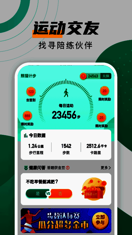 熊猫计步手机版是一款实用的免费计步软件。它具备丰富的计步模式,能实时记录用户的走路步数、运动轨迹、运动时长等信息,方便用户随时查看。用户还能自由设置计步数据,享受便捷服务与体验。软件界面简洁,用户可轻松进入社区交流讨论。