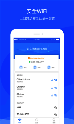 这款软件能智能检测并连接周围WiFi热点,无需手动输入密码,自动连接安全网络,使用便捷。还可帮助用户增强WiFi信号的稳定性和强度,让上网更流畅。