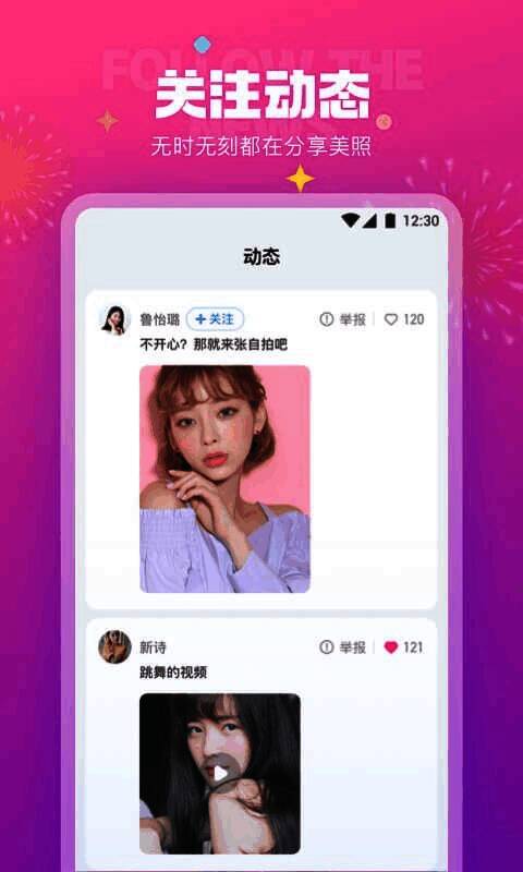 2. 这里汇聚你喜欢的一切,有精彩的直播内容和无尽的趣味集锦,每天都有新惊喜。恋爱、约会、城市聊天、与陌生人有趣的视频互动等,充满乐趣。作为高人气的视频直播聊天交友平台,能让你结识同城陌生人,体验全新交友方式。