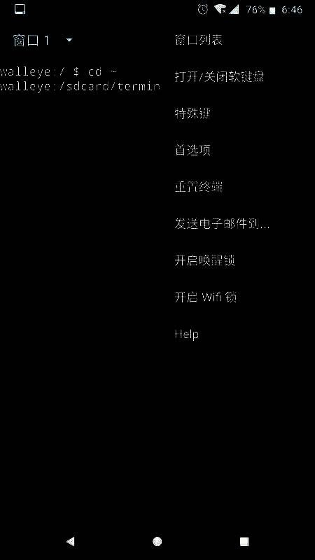 3. 终端会话运行时,会在 Android 状态栏显示通知以便快速访问。