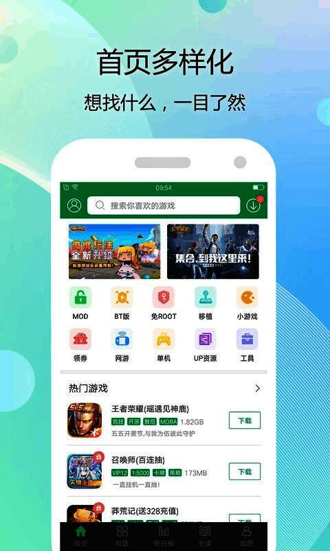 1、全球首创一键下载安装大型游戏,自动适配你的手机机型,无需再为寻找数据包而烦恼。