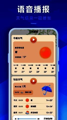 3. 便捷的语音播报:采用真人语音播报功能,生动传递天气信息,方便用户获取天气状况,提升体验。
