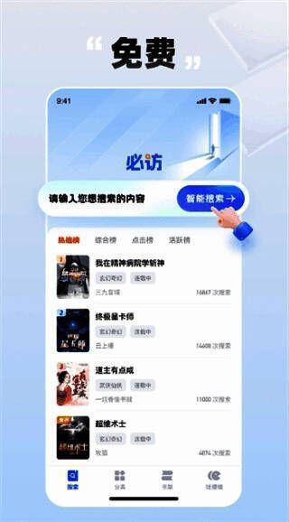 书架管理便捷,阅读衔接流畅。能统计推荐热门搜索小说,用户可在热搜榜查找阅读。所有小说免费读,界面设计简洁易操作,还提供多种字体和背景色选择。