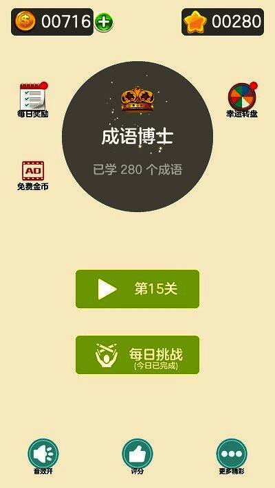 4. 有排行榜系统,玩家能与全球玩家比拼成绩,挑战自我成成语达人。