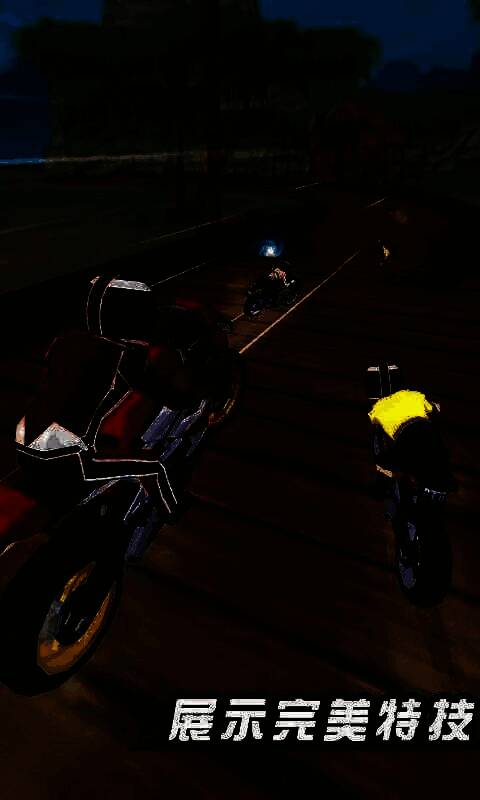 - 玩家可根据对速度和操控的需求选择不同摩托车,每辆车都有独特性能与外观。