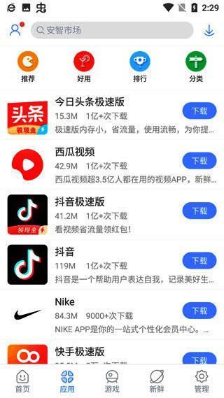 安智市场历史版本是一款超实用的免费手机应用下载软件。它能为用户提供海量丰富的软件与游戏资源,聚合多样分类和榜单,随时呈现热门新品,方便用户一键下载安装。其智能搜索可轻松检索所需,简洁界面让操作不费力。