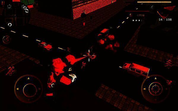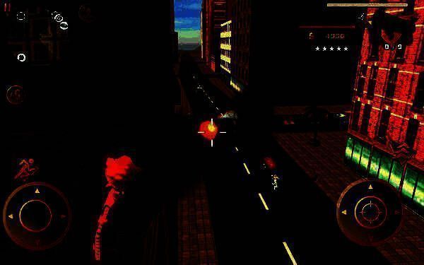 1、基础操作:左侧控制移动、加速,右侧控制绳索、攻击(跳跃)、跳跃,右上侧实时显示武器更换、血量和经验。玩家可自由玩法,与其他帮派人物交火,杀敌获经验,杀多产生星级后会引来巡警等特殊进攻,需完成存活与杀敌任务。