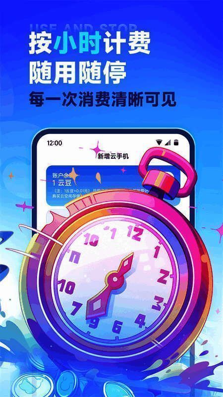 3. 云手机原有的人性化小时计费模式可随时暂停。云托管备份更安全,V bean充值更实惠。开启收费后可立即关闭,完全符合玩家的游戏时间,真正节省时间和成本。