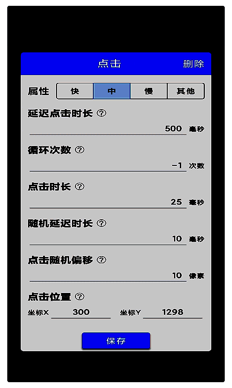 4. 实时保存,一键激活,一键设置操作说明,保存点击脚本以便下次继续使用,提供完美点击效果。