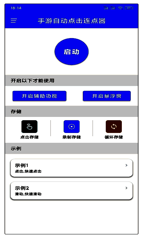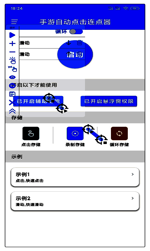能依据设定的时间间隔,在用户选定的任意位置自动点击移动屏幕。支持自动抢红包、抢订单、抢火车票、自动签到、点赞以及各种手游卡牌道具等实用功能。软件小巧便捷、操作简单,开发者考虑到初学者难度,提供了详细教程。还允许用户定制点击频率、触摸持续时间、执行频率和滑动持续时间等参数,且无需root权限,使用方便。