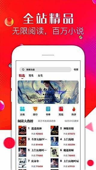 点点阅读 app 免费全本小说是一款广为人知的在线小说阅读平台。它为用户收藏了数百万本经典、热门小说等丰富书籍资源,设有校园、悬疑等热门小说主题供筛选查看,还提供全面小说榜单。用户能轻松获取最新热门小说,享受便利追书之旅。