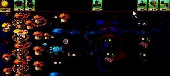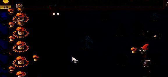 2. 先在左侧补充两个向日葵,在一路种植三个喷菇投手。