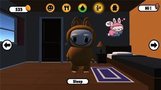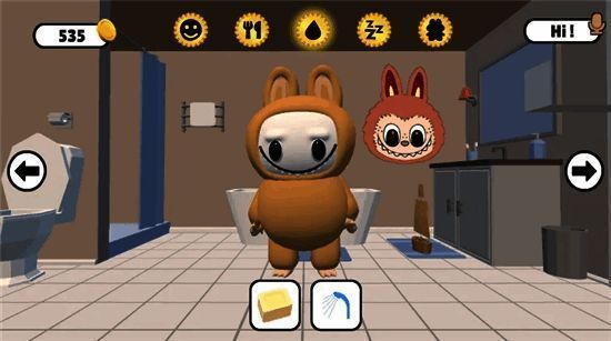 进入游戏后,玩家可通过轻触、滑动等简单操作与拉布布进行深度互动。无论是喂它吃零食、为它洗澡擦干,还是在它困倦时轻轻盖上小毯子,每一个细节都充满温情。拉布布会以丰富的表情和动作回应你的照顾——打嗝、打哈欠、原地转圈,甚至模仿你说出的话,用奶声奶气的电子音重复每一个字,带来十足的反差萌感。