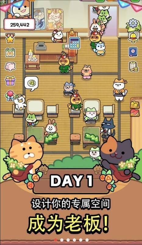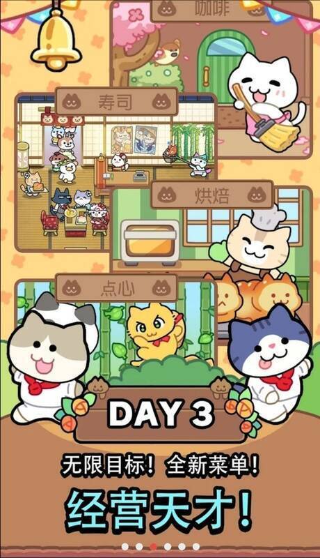 5、玩家能够招聘各类性格独特的猫咪担任餐厅职员,提升运营效率,优化店铺管理。