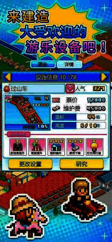 这是游客主要使用的地方,可自由配置。设备级别提升会发现新设施,部分游乐设备配置后扩建能延伸路线,通过研究可提升等级。
