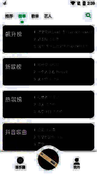 1、打开软件,首页有多种风格歌单及榜单推荐。