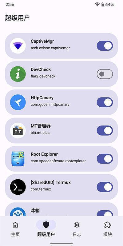 4、通过面具Magisk获取完美ROOT后,可对软件等脚本进行授权,以达成预期效果。