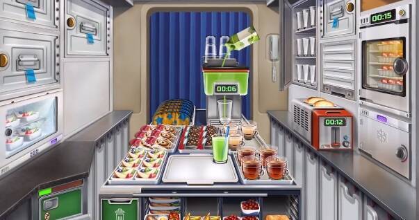 飞机大厨官网国际服手游采用美式漫画风精心设计,画面精致细腻,餐厅场景美轮美奂,饮食造型栩栩如生,搭配休闲舒缓的背景音乐,为玩家带来绝佳的游戏体验。玩家在飞机上化身为厨师,经营美食餐厅,凭借高超厨艺为顾客烹制佳肴以获取收益。每个关卡都有食物制作流程,食材放置和上菜速度与收益紧密相关。