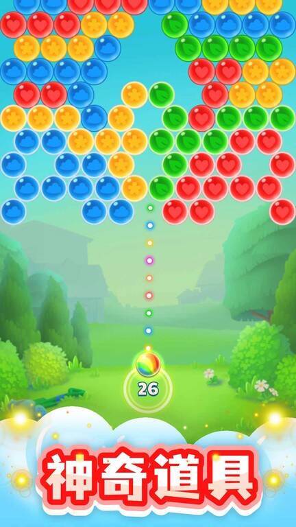 有多样关卡挑战,包含数百个关卡,玩家可逐步提升技能和策略水平,挑战高难度任务。有每日任务和奖励,完成可获金币,用于解锁更多道具或特殊泡泡。道具系统提供多种道具,如消除一定范围泡泡、增加发射次数等,助玩家轻松过关。玩家还能与朋友对比成绩和进度,增加互动性和竞争性。
