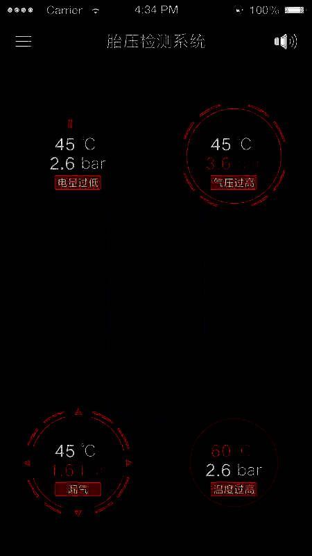 1、语音广播:当胎压过高、过低、温度过高或电池电量低时,会语音播报胎压情况。
