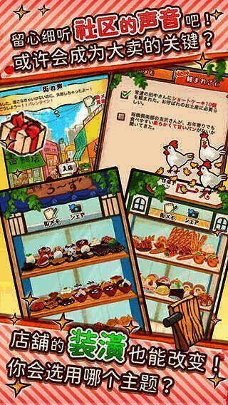 游戏提供多种商业任务,有众多管理方法等你发掘。玩家可直接装修店铺,还能按配方提示制作洋果子。